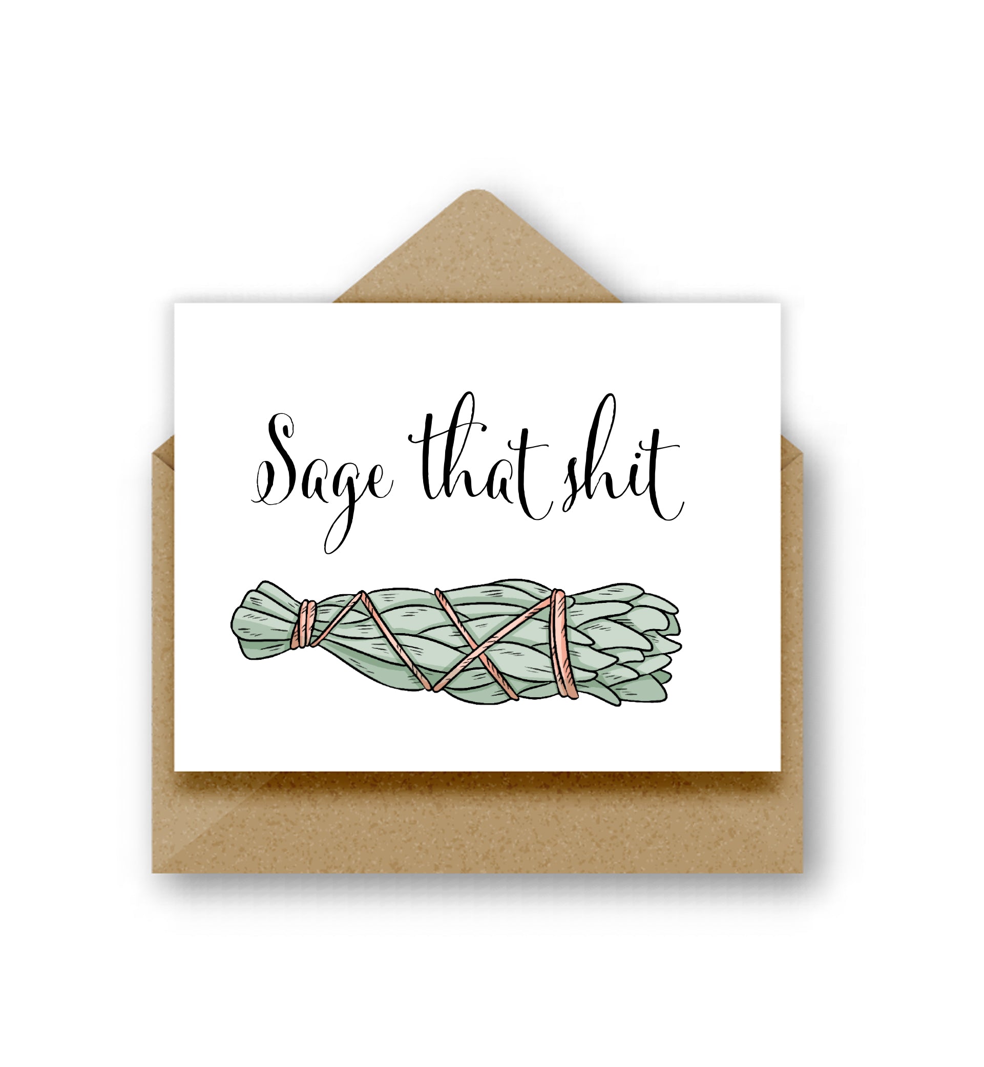 Sometimes, life calls for a little cleansing, and our Sage That Shit card is here to add a touch of humor to the process. Perfect for friends or family who appreciate a bit of sass along with their spiritual practices, this card combines a playful message with a beautiful illustration of a sage bundle. Whether itโs for a new home, a fresh start, or just a gentle reminder to clear out the bad vibes, this card is the perfect way to say, "out with the old, in with the good energy."