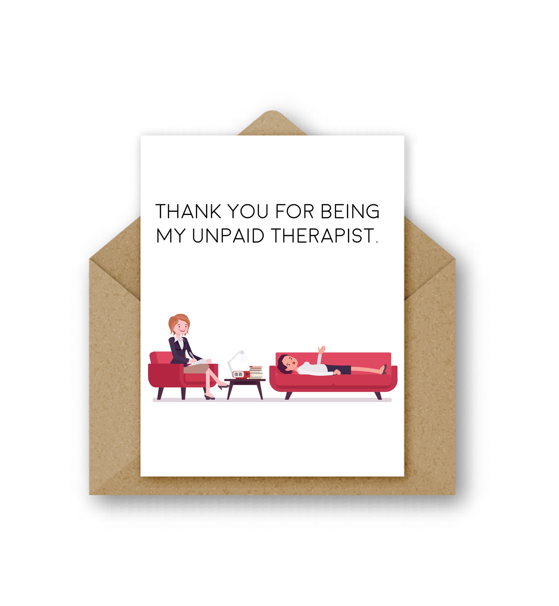 Featuring a playful illustration of a therapy session, it’s the ideal way to say thank you to the friend who’s practically your personal therapist—without the hourly rate.